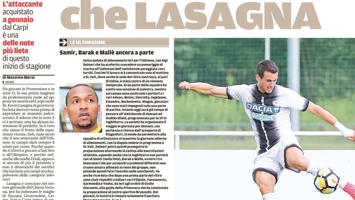 Il Messaggero Veneto a proposito del vero protagonista del ritiro, Kevin Lasagna: