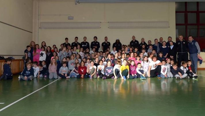 Questa mattina la squadra, capitanata da coach Lardo, ha fatto visita all'istituto udinese. Domenica i ragazzi saranno presenti al PalaCarnera per la sfida con Mantova