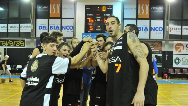 "Note Tiri liberi: Apu Gsa 11/16, Urania 12/15. Rimbalzi: Apu Gsa 34 (Castelli, Marchetti e Vanuzzo 6 a testa), Urania 30 (Stijepovic 8). 5 falli: Stijepovic al 39’ (71-64) e Truccolo al 39’ (74-64); tecnico a Truccolo al 23’ (49-37). Spettatori: 500 circa.
