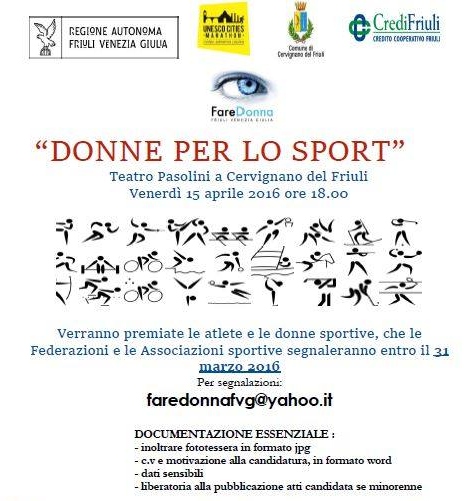 Associazioni e Federazioni sportive potranno segnalare i nominativi delle atlete entro il 31 marzo. La cerimonia di premiazione è in programma venerdì 15 aprile al Teatro Pasolini di Cervignano