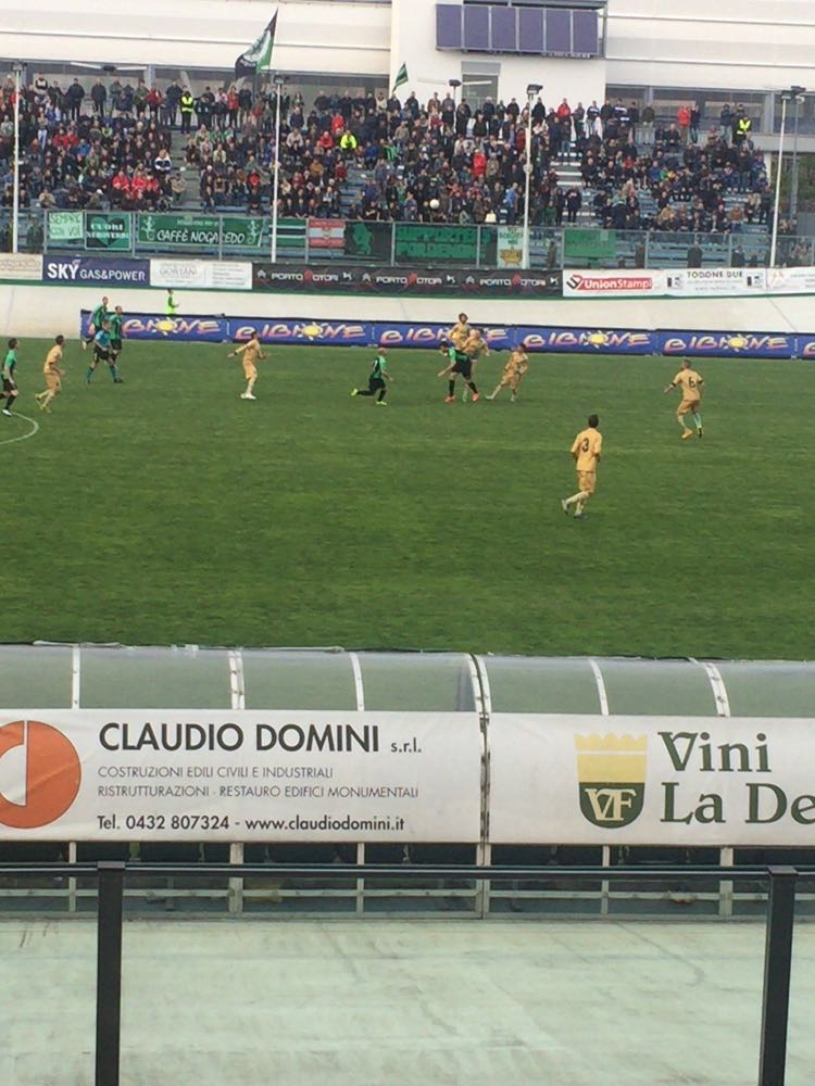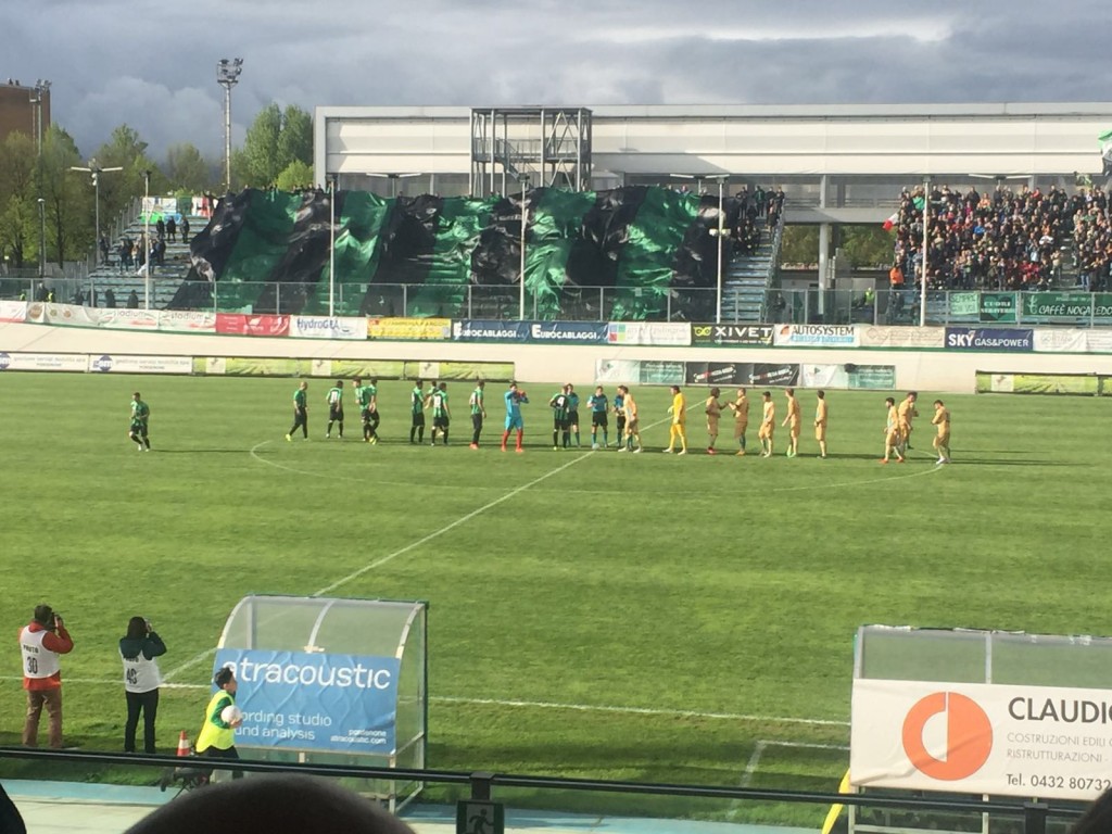 Il vecchio Bottecchia strapieno per la sfida al vertice tra Pordenone (terzo a 53 punti) e Feralpi (quinto a quattro lunghezze dai Ramarri). Gara a dir poco emozionante, con un Pordenone dal grande cuore, ma anche dalla tanta classe che sa soffrire, reagire e trovare una vittoria che ha il sapore dei play off per la Serie B.
