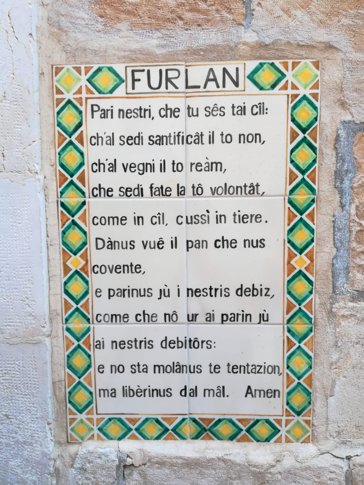 Nella chiesa del Padre Nostro, sulla cima del monte degli ulivi capeggia la preghiera più importante per i Cristiani di tutto il mondo e per questo in tutti gli idiomi è stata tradotta. Tra questi anche il Friulano, che si è ritagliato uno spazio tra le lingue ufficiali parlate sulla Terra.