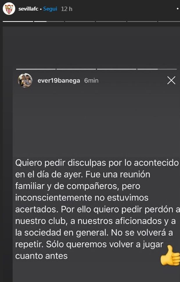 Il giornale spagnolo 'Marca' ha riportato alcuni scatti di un pranzo che si è tenuto fra alcuni giocatori del Siviglia e le loro mogli e che sta suscitando molte polemiche in Spagna. La riunione, di 11 persone, avrebbe infranto la regola di incontri di massimo 10 persone, stabilita dai club per la ripartenza. Nell'eventualità che dovesse essere riscontrato un positivo, il pranzo potrebbe costare molto caro non solo al Siviglia ma a tutta la Liga. Il massimo campionato spagnolo infatti, rischierebbe di slittare in caso di nuovi contagi. Attraverso il profilo Instagram ufficiale del Siviglia, i giocatori coinvolti hanno voluto fare le loro scuse a tutti dopo quest’episodio.