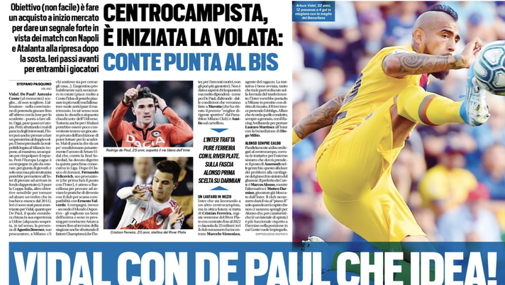 Vidal, De Paul? Antonio Conte (al momento) sceglie... di non scegliere. L’allenatore - nella convinzione di potersela giocare fino all’ultimo con la Juve per lo scudetto - punta a fare all-in. Oggi, pare quasi un’utopia. Però, sfruttando i...