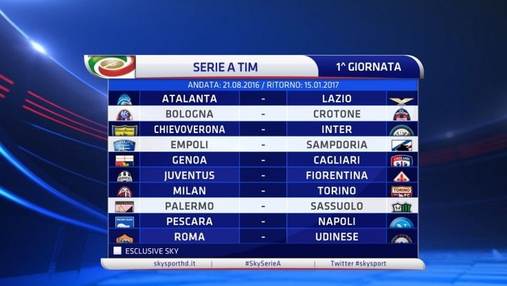 h) le Società partecipanti ai turni preliminari e/o ai Play-Off della UEFA Champions League (Napoli) e della UEFA Europa League (Milan) non si incontrano tra loro nella 1ª giornata.