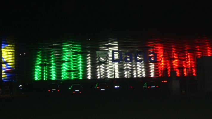 Per questo oggi, al tramonto, la Dacia Arena si è illuminata con un gioco di luci che ha riprodotto sulla facciata esterna della nostra casa la bandiera friulana e quella Tricolore.