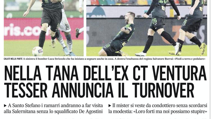 PRUDENZA DELL'ATTILIO«Sono contento di quello che hanno fatto e stanno facendo i ragazzi, ma non smentisce la propria proverbiale prudenza il tecnico neroverde - il nostro obiettivo rimane la salvezza. Se poi riusciremo a conquistarla prima del previsto vedremo come alzare l'asticella delle nostre ambizioni». Fa bene Tesser a pensarla così. Sino a ora la sua filosofia ha funzionato benissimo. Altrettanto bene ha funzionato l'organizzazione di gioco che ha predisposto per la squadra. Anche nel match di domenica geometrie e qualità del prodotto sono state nettamente superiori a quelle del blasonato Ascoli. Il Picchio si è aggiunto alla lista delle vittime nobili alla Dacia già composta da Frosinone, Spezia, Empoli, Perugia, Crotone e Trapani.