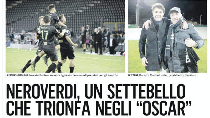 SETTEBELLO NEROVERDEDurante l'evento ideato dal giornalista Donato Alfani, che andrà in scena martedì 4 febbraio all'Hotel dei Congressi di Castellammare di Stabia, alla società neroverde verranno consegnate ben 7 statuette. Quella più prestigiosa andrà alla squadra, premiata come miglior compagine del girone B di Lega Pro. Una scelta certificata dalla fantastica cavalcata dei ramarri verso la promozione in B. A fine campionato Stefani e compagni avevano totalizzato 73 punti (6 di vantaggio sulla Triestina, seconda), frutto di 19 vittorie, 16 pareggi e 3 sconfitte, con 56 gol fatti e 32 subiti. Un percorso ulteriormente impreziosito dall'imbattibilità esterna e dalla conquista della Supercoppa di categoria, grazie al pareggio (0-0) a Chiavari con la Virtus Entella (vincitrice del girone A) e al 3-0 rifilato alla Juve Stabia (prima nel C). Riconoscimenti verranno assegnati anche a Mauro Lovisa come miglior presidente (per re Mauro si tratterà della seconda statuetta di categoria), a Matteo Lovisa (miglior dirigente dell'area tecnica), ad Attilio Tesser (allenatore top), ad Alberto Barison (miglior difensore), a Salvatore Burrai (centrocampista d'élite) e a Leonardo Candellone (miglior giocatore: per l'attaccante un bottino di 14 gol realizzati senza l'ausilio dei rigori). Fra i premiati ci sarà pure Tommaso Pobega, oggi punto di forza del Pordenone in B, ma la scorsa stagione in forza alla Ternana, top dei giovani. Il centrocampista triestino è stato segnalato dalla giuria quale esordiente top. Un settebello che giunge propizio nel momento in cui i ramarri si stanno leccando le ferite prodotte dalla prima sconfitta (0-2) alla Dacia Arena, subita sabato, quando si sono dovuti arrendere a un Pescara galvanizzato dall'avvicendamento in panca fra il dimissionario Luciano Zauri e il subentrante Nicola Legrottaglie.