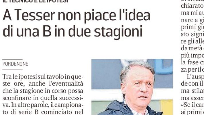 Tra le ipotesi sul tavolo in queste ore, anche l'eventualità che la stagione in corso possa sconfinare in quella successiva. In altre parole, il campionato di serie B cominciato nel 2019 potrebbe terminare addirittura nel 2021. È un'eventualità che non piace all'allenatore del Pordenone, Attilio Tesser