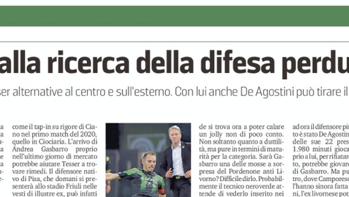 Messaggero veneto: Pordenone, con Gasbarro alla ricerca della difesa perduta