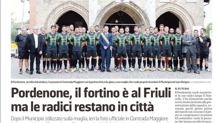 La nuova casa (di gioco) è il Friuli. Uno stadio che sta diventando un fortino: sinora due vittorie e nessun gol subito. Ma la casa originaria è - e rimane - Pordenone. Così, la società neroverde ha volutamente scattato la foto di gruppo di fronte al Municipio, in corso Vittorio Emanuele. Il club che, per il suo primo anno nella storia tra i cadetti, ha scelto di giocare a Udine, ha rimarcato ieri per un'altra volta il suo legame col territorio e con una città che, nonostante la distanza, segue De Agostini e compagni anche sotto l'arco dei Rizzi: dei quasi 1.300 abbonati la quasi totalità proviene dalla Destra Tagliamento.IL MOMENTOIl Pordenone ha posato in Contrada Maggiore con la prima divisa da gioco. Una maglia, quella pensata dalla società, che vuole proprio ricordare il Municipio nel suo disegno: non a caso è stata definita "home". E la squadra è stata accolta proprio dal padrone di casa, il sindaco Alessandro Ciriani, che assieme all'Assessore allo Sport Walter De Bortoli, si è fatto ritrarre in una delle foto scattate. Il momento è coinciso con la prima giornata di Pordenonelegge, manifestazione culturale numero uno del territorio. Tanta l'emozione per la parte di dirigenza presente ma anche per i calciatori, soprattutto per chi, come De Agostini e Stefani ma anche Burrai e Misuraca, fanno parte del progetto dai primi anni di serie C. Si sentono molto legati a Pordenone e, vista l'accoglienza e la partenza, si stanno affezionando anche alla nuova casa, Udine e lo stadio Friuli: sinora i ramarri stanno andando a gonfie vele, avendo superato sia il Frosinone sia lo Spezia, due compagini costruite per disputare un campionato di alto livello