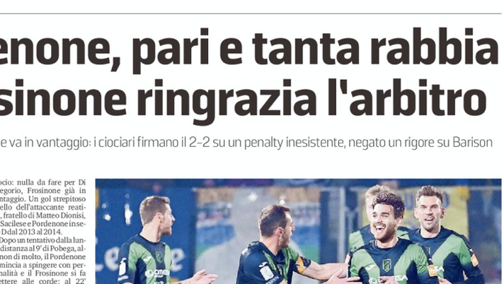 Messaggero Veneto: Pordenone, pari e tanta rabbia Il Frosinone ringrazia l’arbitro