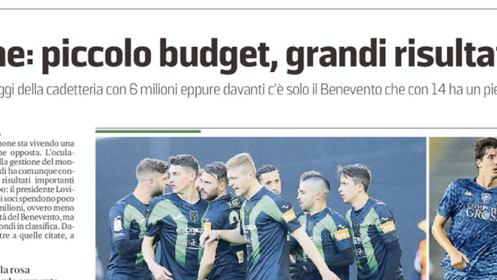Quindicesimo monte ingaggi della cadetteria con 6 milioni eppure davanti c'è solo il Benevento che con 14 ha un piede in A