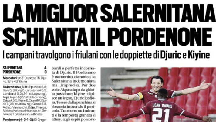Il commento di Tuttosport alla vittoria netta della Salernitana sul Pordenone.