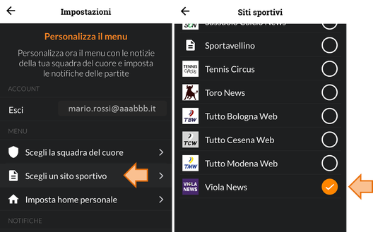Impostazioni/Scegli la squadra del cuore/ Udinese.