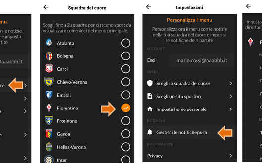 SETTING NOTIFICHE MondoUdinese: Impostazioni/Gestisci le notifiche push