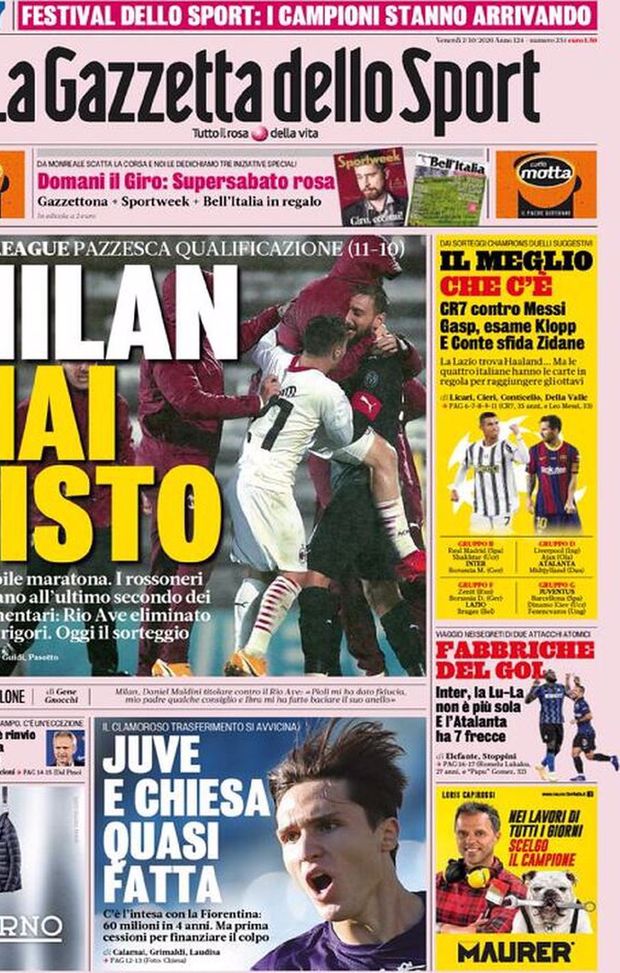 Rassegna stampa dei principali quotidiani sportivi nazionali