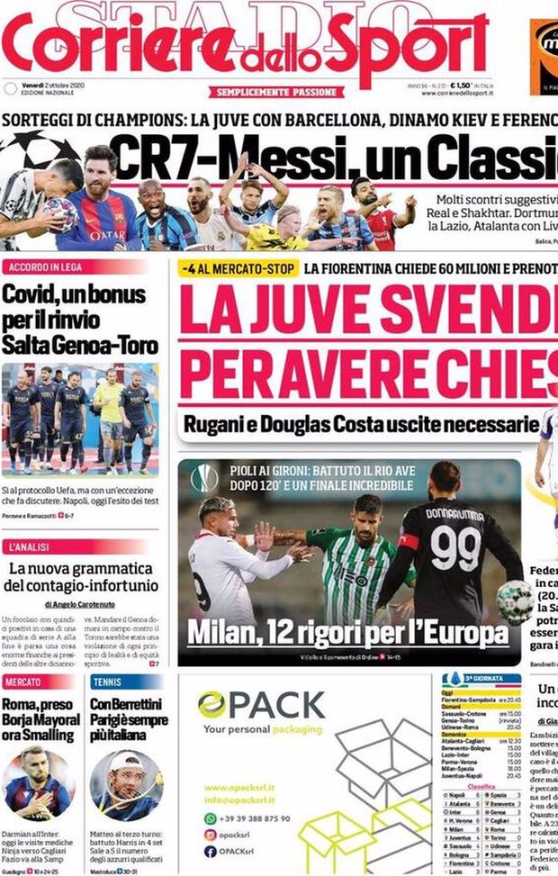 Rassegna stampa dei principali quotidiani sportivi nazionali