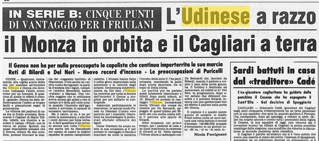 L'Udinese batte il Monza e consolida il suo primato: ecco il commento del Corsera del 9 marzo 1979