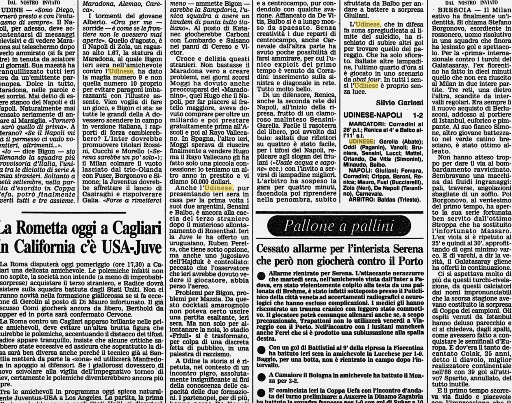 Calcio estivo, ma al Friuli ci sono parecchi cori contro il Napoli, è il 6 agosto 1989 e l'Udinese perde in amichevole