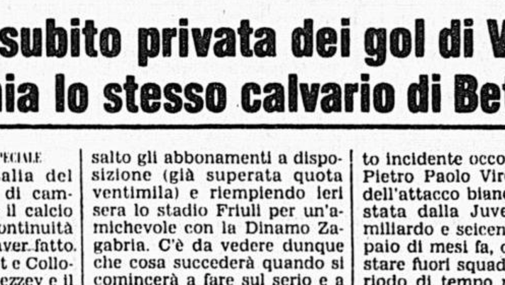 Mentre Causio segna, Virdis patisce già un infortunio: è il 4 agosto 1982