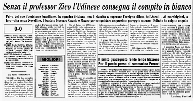 L'Udinese priva di Zico pareggia 0-0 con l'Ascoli: è il 7 marzo 1984 Redazione 7 marzo - 00:05 Corriere della Sera © RIPRODUZIONE RISERVATA Commenta Continua la lettura Commenti Invia Commento Tutti Leggi altri commenti