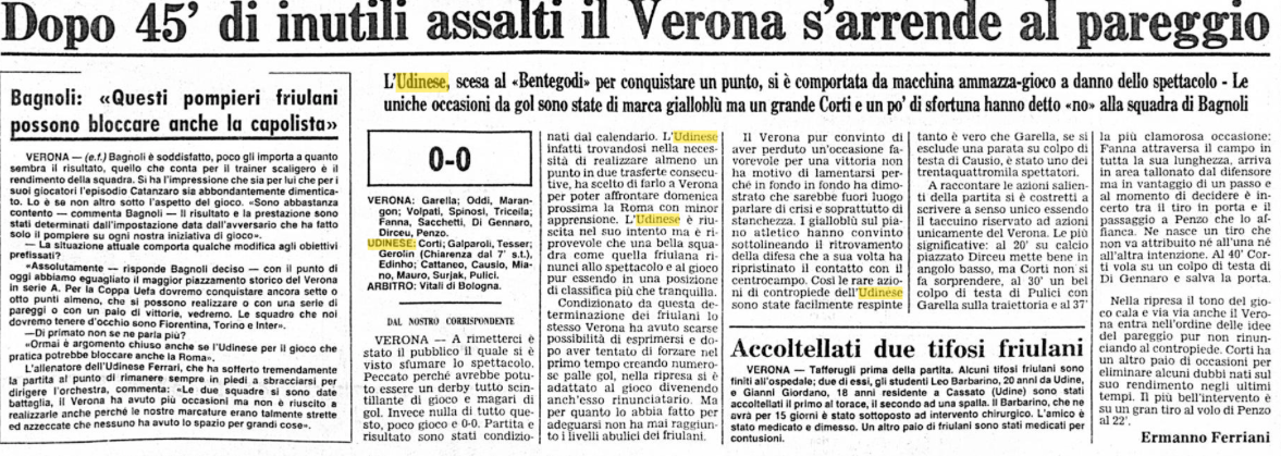 Ecco il commento del Corsera a Verona - Udinese del 1983