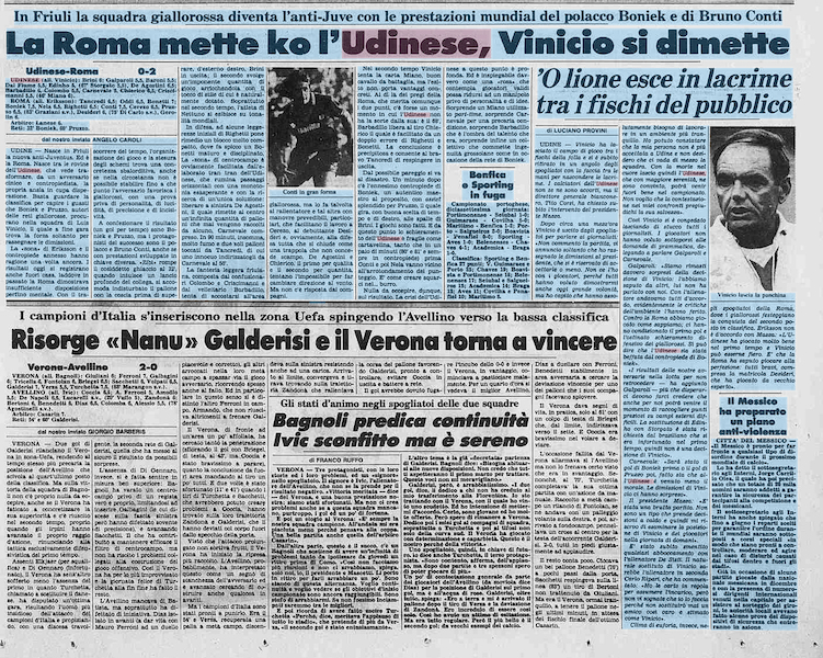 L'Udinese esce sconfitta tra i fischi con la Roma e Vinicio si dimette: è il 10 gennaio 1986