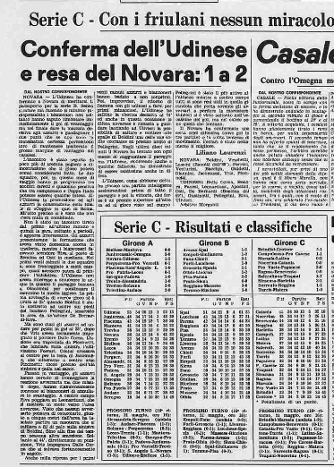 L'Udinese si impone 2-1 a Novara ed è sempre più primatista in Serie C: è l'11 maggio 1978