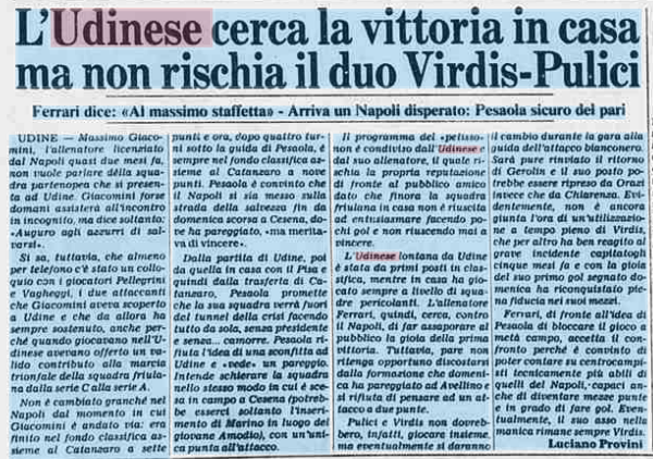 L'Udinese contro un Napoli disperato non rischia Pulici e Virdis. E' il 13 gennaio 1983