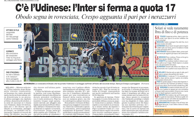 L'Udinese coglie un ottimo pari contro l'Inter a Milano. A segnare è Obodo in rovesciata. E' il 1 marzo 2007