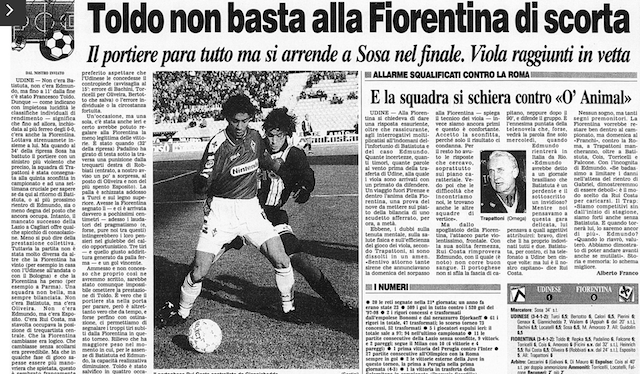 Un gol di Sosa nel finale consente all'Udinese di battere la Fiorentina: è il 13 febbraio 1999