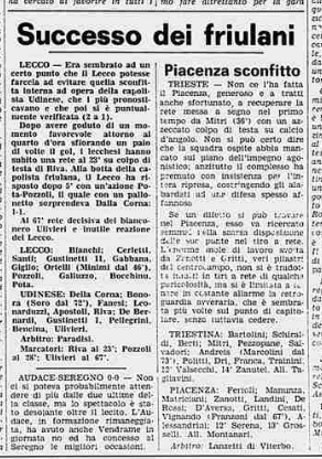 L'Udinese batte il lecco 2-1 con reti di Riva e Ulivieri: è il 13 aprile 1978