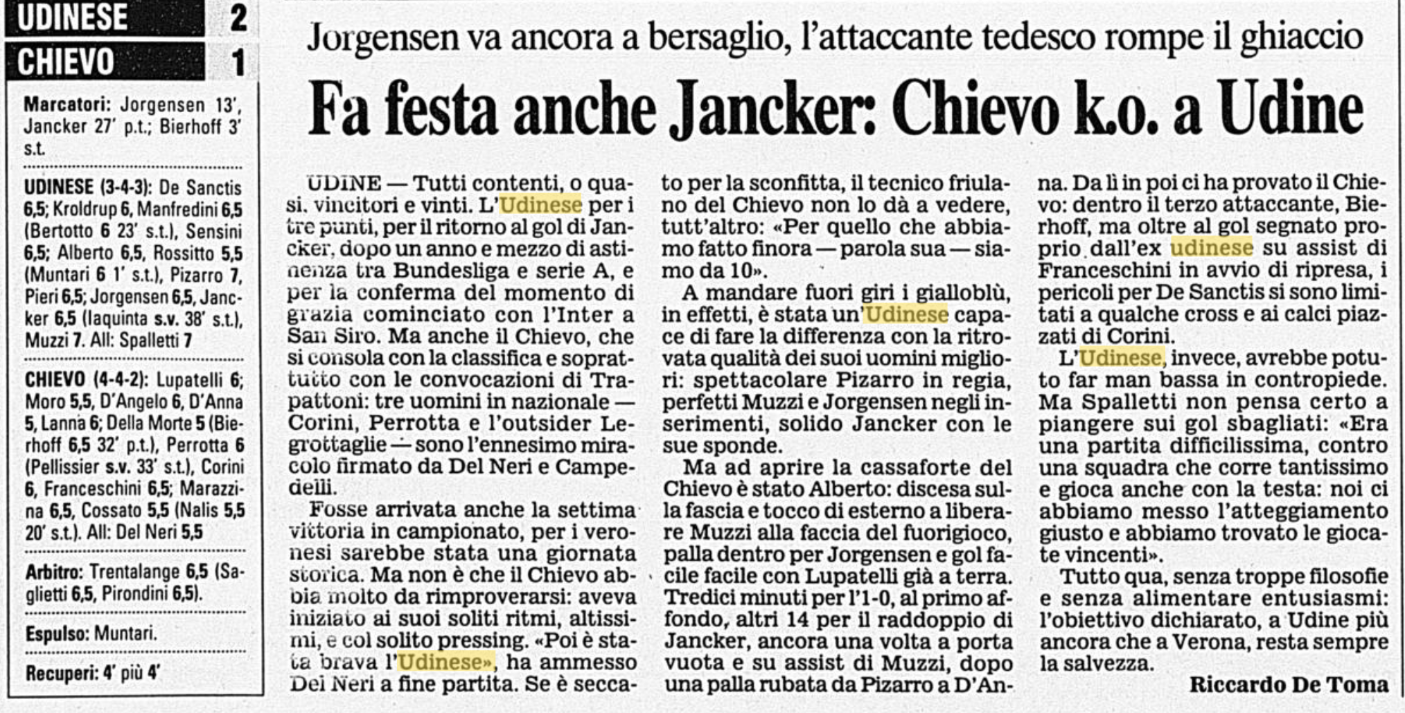 L'Udinese batte il Chievo e fa festa Janker, l'acquisto più costoso di Pozzo. E' il 15 novembre 2002