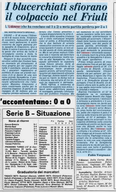 L'Udinese batte la Samp 3-2 e continua a dettare legge in B: è il 15 aprile 1979
