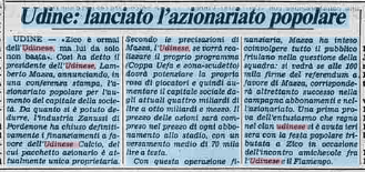 Dopo l'acquisto di Zico, Mazza - presidente dell'Udinese - lancia l'azionariato popolare:è il 15 giugno 1983