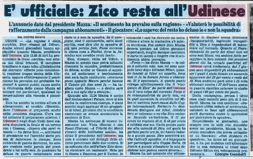 Ufficiale la conferma da parte di Mazza per Zico: rimane ancora a Udine. E' il primo giugno 1984