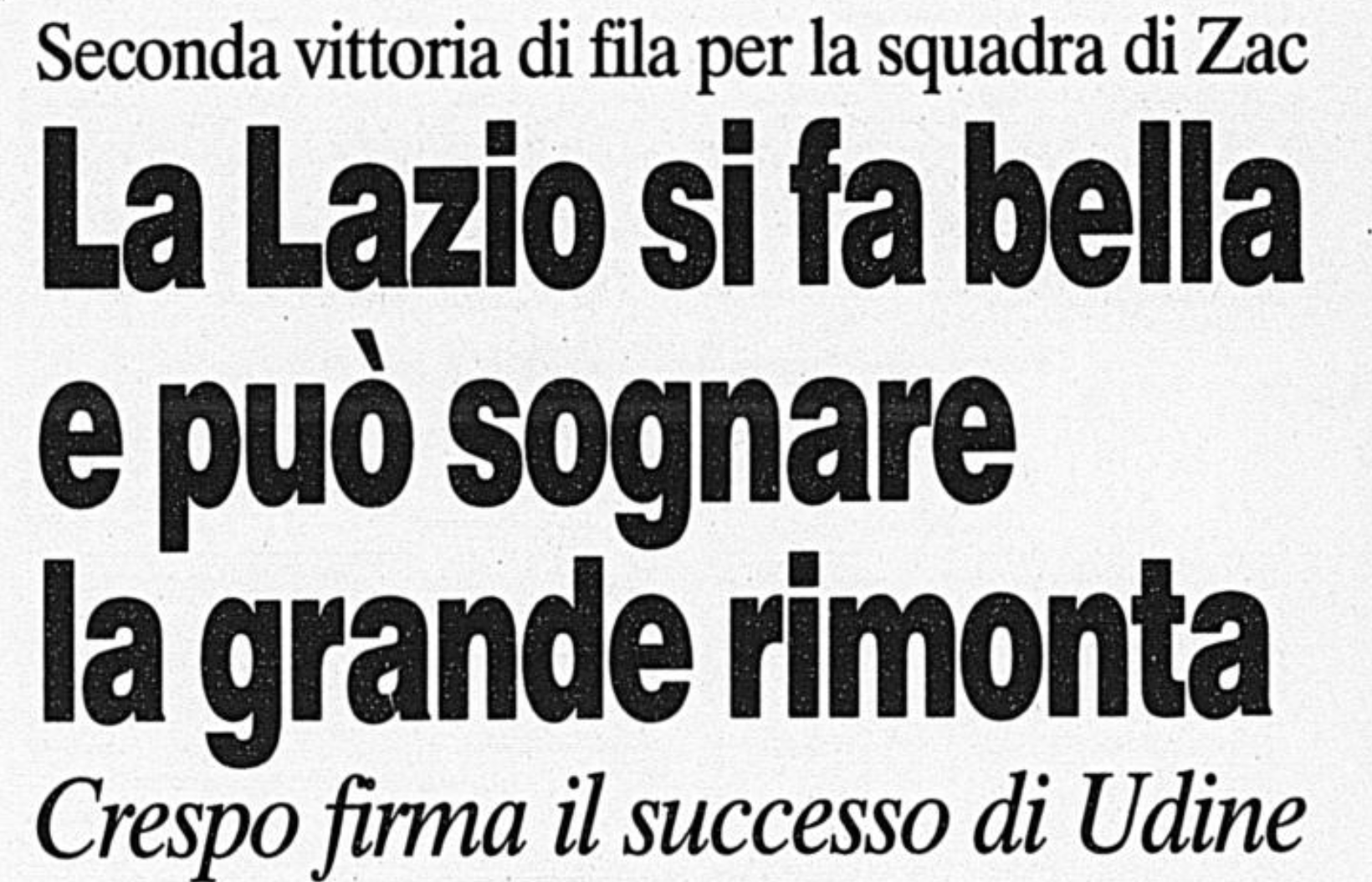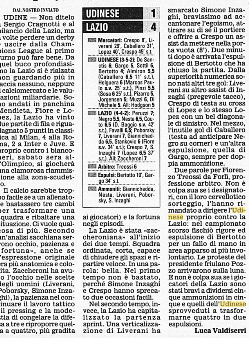 La Lazio di Zaccheroni vola e trova quattro gol contro l'Udinese di Hodgson: è il 17 novembre 2001