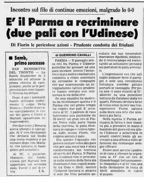 L'Udinese strappa un pari a Parma in Serie B, con i ducali che prendono due pali. E' il 17 dicembre 1988