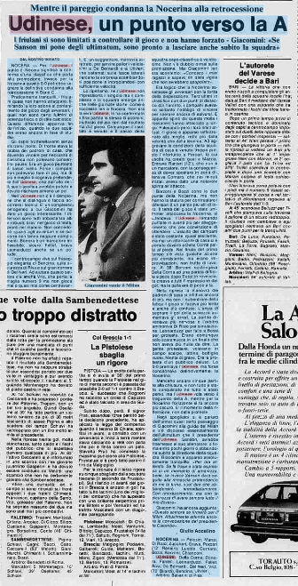 L'Udinese di Giacomini pareggia con la Nocerina condannandola alla Serie C: bianconeri a un passo dalla promozione. E' il 18 maggio 1979