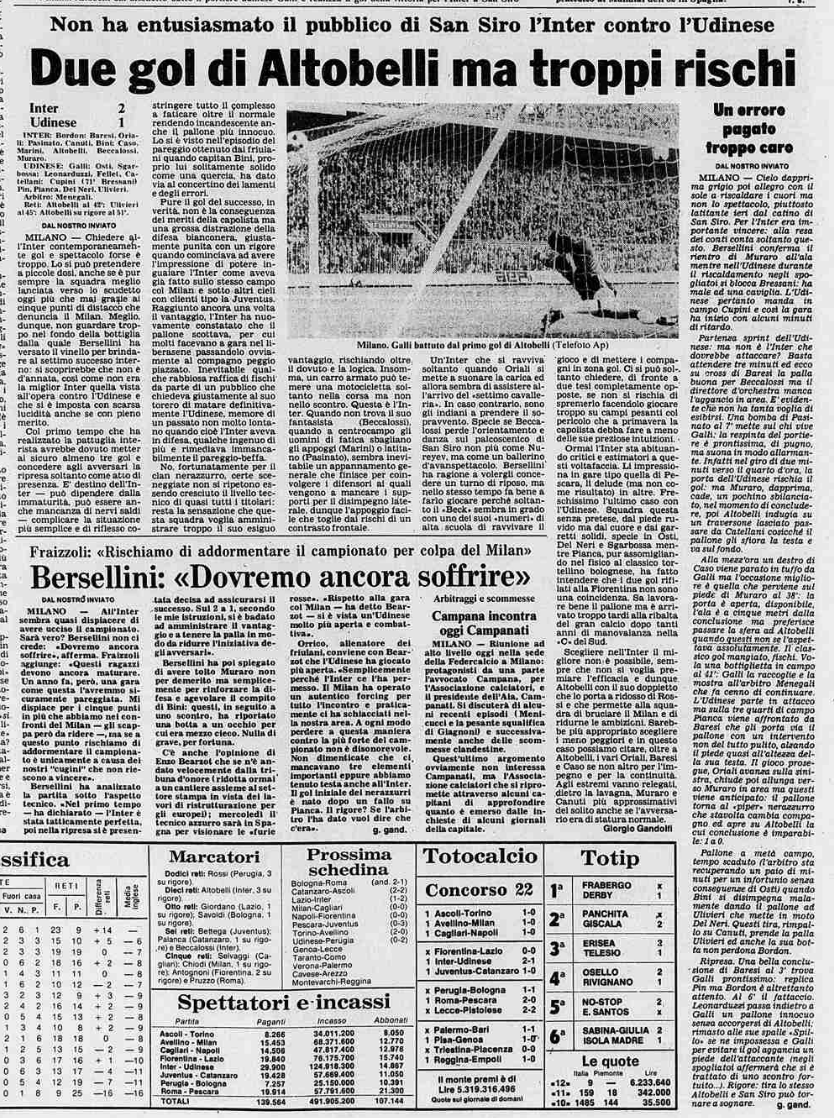 Non basta una buona Udinese a fermare l'Inter: Altobelli sigla una doppietta e regala i due punti ai suoi. E' il 19 gennaio 1980