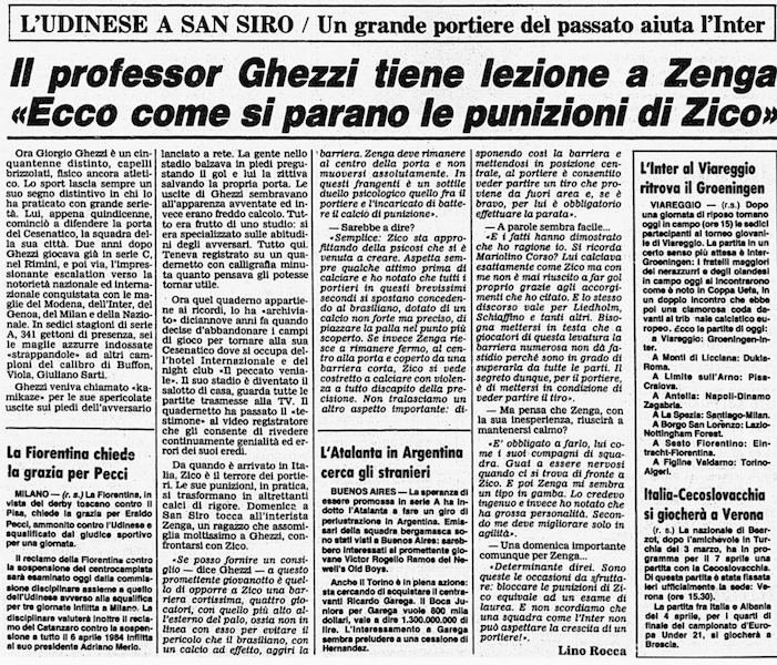 L'Udinese di Zico si affaccia a a San Siro contro l'Inter e Zenga studia come parare Zico. E' il 20 febbraio 1984