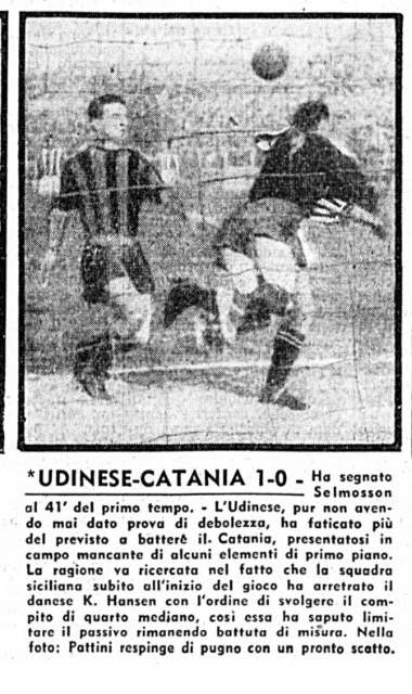 L'Udinese batte il Catania 1-0 con rete dello svedese Selmosson: è il 21 febbraio 1955