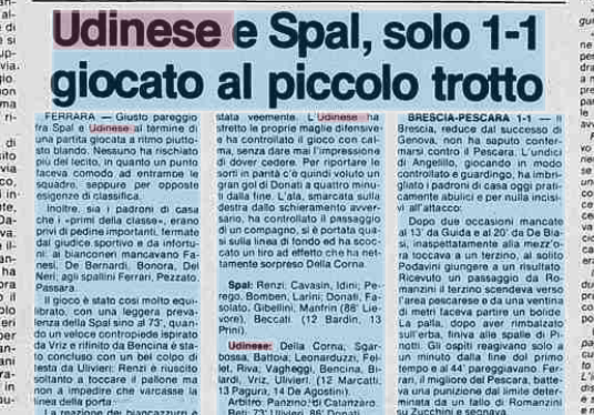 L'Udinese mantiene il primo posto in classifica in Serie B nonostante l'1-1 con la Spal: è il 21 aprile 1979