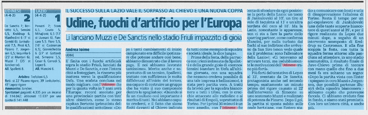 L'Udinese batte 2-1 la Lazio di Mancini e sorpassa il Chievo nella volata europea. E' il 21 maggio 2003