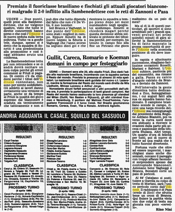 Zico ospite al 'Friuli' per la gara che l'Udinese ha vinto con la Samp e che le consente di volare in classifica di B, come racconta il Corsera.