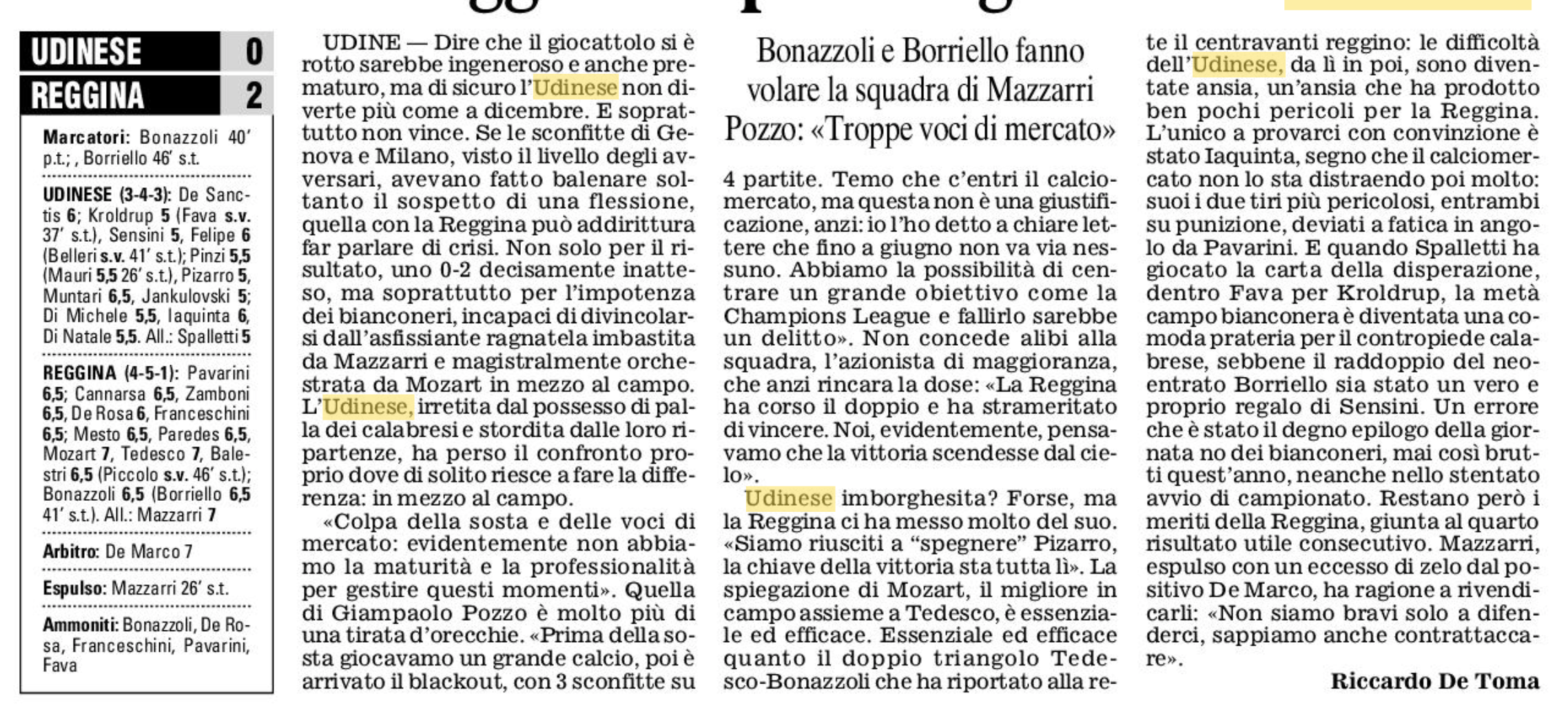 Pozzo tuona contro il mercato e le voci distraenti dopo che l'Udinese è crollata contro la reggina. E' il 23 gennaio 2005