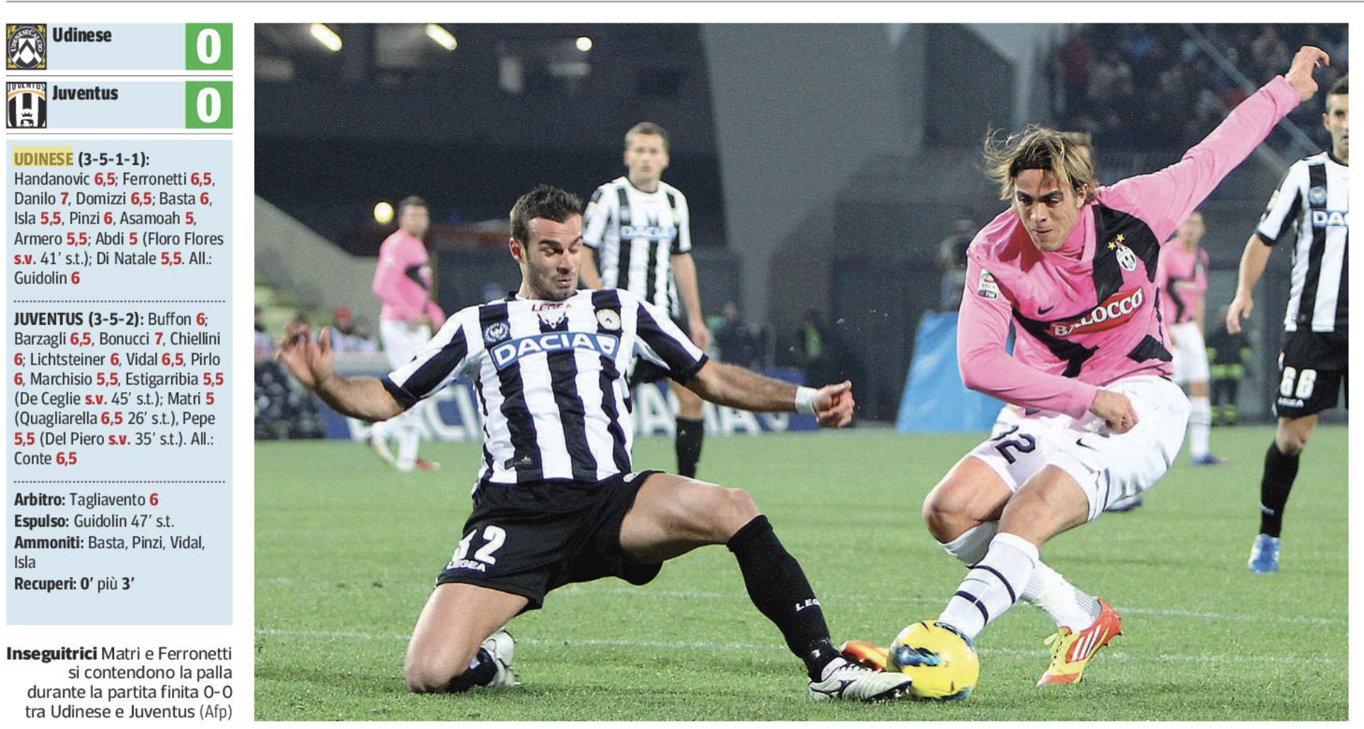 L'Udinese di Guidolin domina ma non riesce a battere la Juve di Conte: è il 23 dicembre 2011
