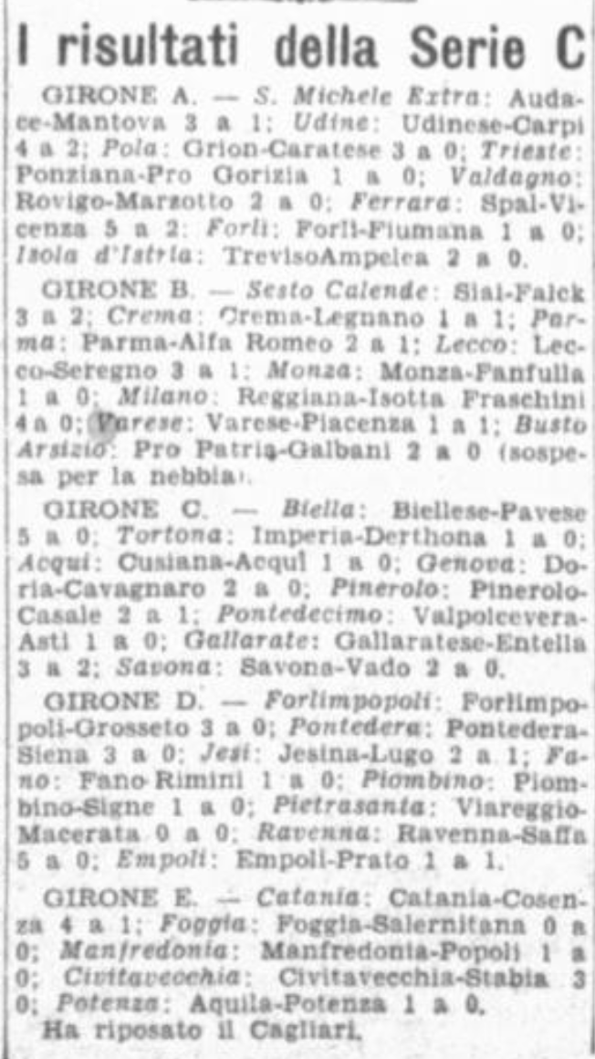 In piena epoca della dittatura fascista l'Udinese gioca in Serie C contro il Carpi battendolo 4-2. E' il 25 gennaio 1938