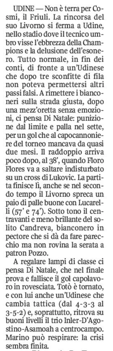 Di Natale si riprende l'Udinese che batte il Livorno Redazione 25 novembre - 01:31 Corsera © RIPRODUZIONE RISERVATA Commenta Continua la lettura Commenti Invia Commento Tutti Leggi altri commenti